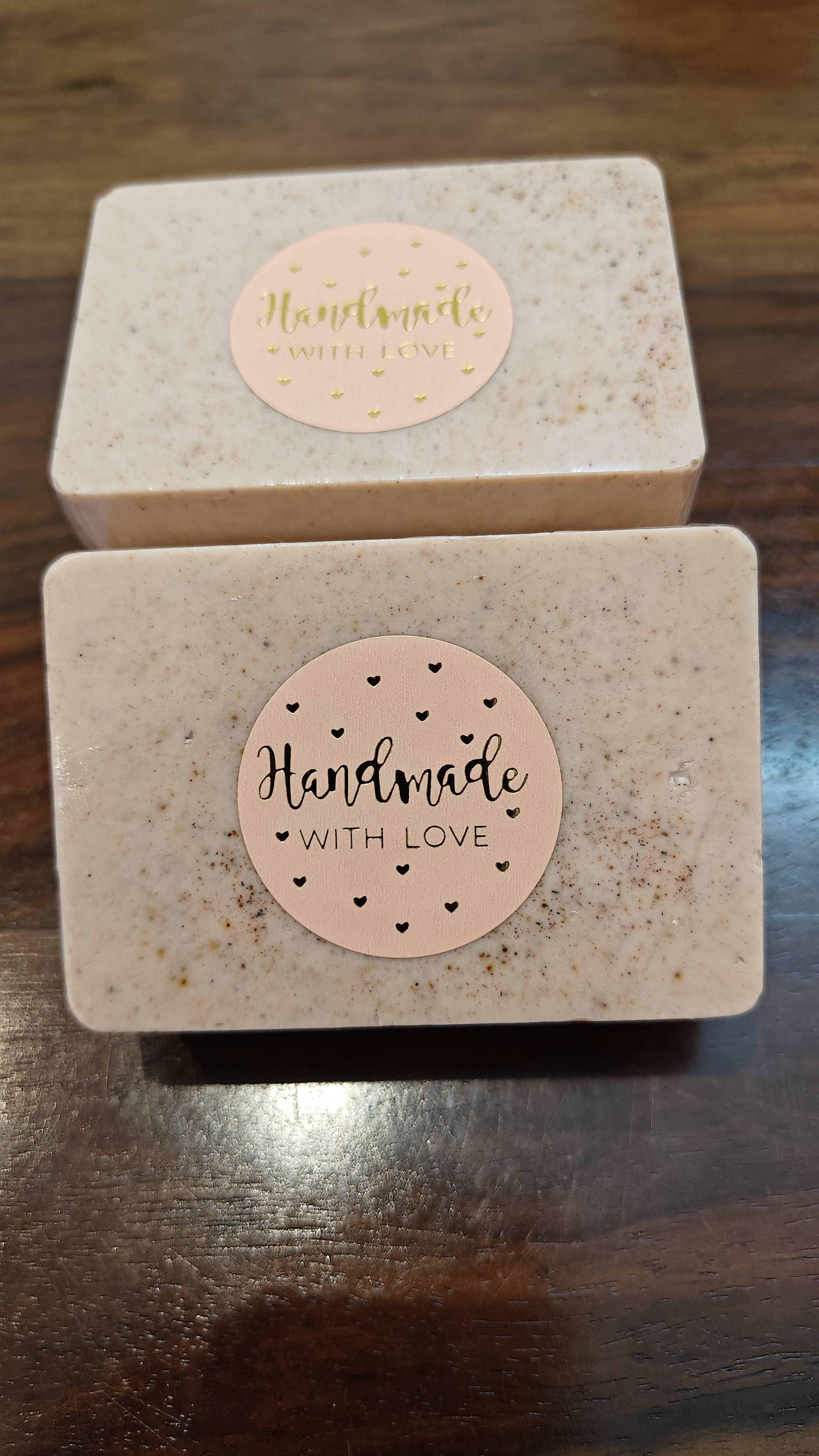 Glycerin based soap with embedded Natural Loofah and Turmeric extracts.