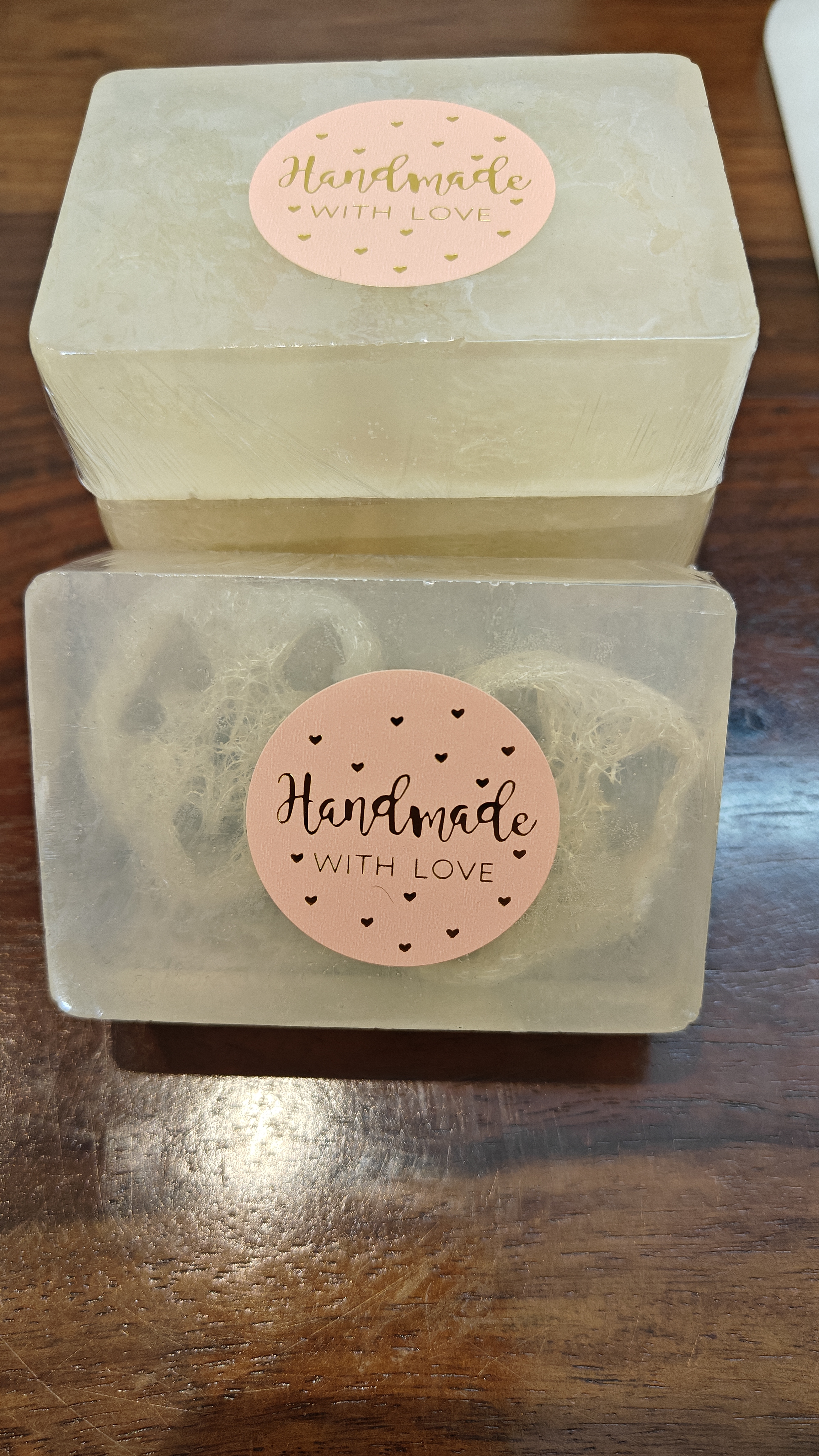 Glycerin based soap with embedded Natural Loofah and Turmeric extracts.